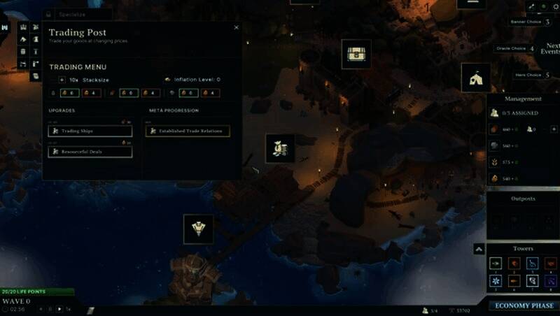 每次战役随机生成地形与事件,如突袭的狼群、限时资源宝箱等。“旗帜选择”系统提供阶段性增益,如攻速提升或资源获取加速。永久死亡机制促使玩家不断优化策略,适应随机化的战场环境。