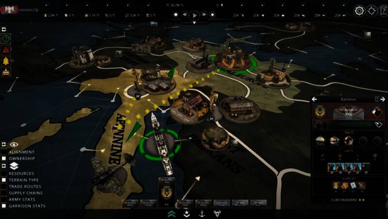 玩家需建立联盟,与其他势力谈判贸易协议,进而征服全球。超过100个区域等待玩家去探索和征服,每个区域都有专属的奖励和惩罚。玩家可以集结军队,在陆地、海洋和天空与敌对派系展开战斗。