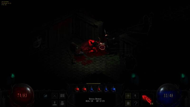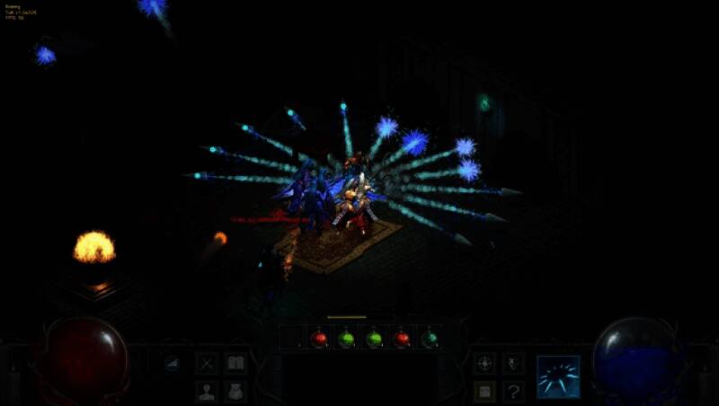 通过 45 度斜角呈现立体场景,建筑细节如斑驳的墙面、悬挂的锁链,以及角色动作如施法时的手势、受击时的硬直,都以流畅的像素动画呈现。技能特效采用粒子系统强化,如陨石术的火焰轨迹与亡灵召唤的黑雾弥漫。
