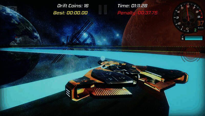 你操控一艘宇宙飞船,需沿轨道行驶并转弯,转弯越强、越长,积分越多,要在全程驾驶中争取获得尽可能多的积分。漂移是过弯技术,比赛在干燥沥青、多弯道赛道进行,仅用后轮驱动飞船。