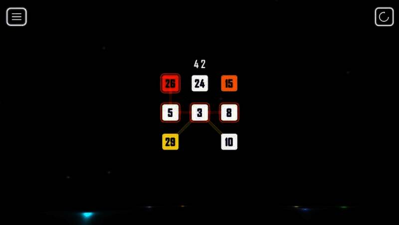 4、从彩色方块中的一个起始画路径,直至达到42。