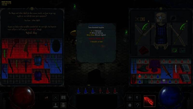 游戏通过45度斜角呈现立体场景,建筑细节,如斑驳的墙面、悬挂的锁链,以及角色动作,如施法时的手势、受击时的硬直,都以流畅的像素动画呈现。技能特效采用粒子系统强化,像陨石术的火焰轨迹和亡灵召唤的黑雾弥漫。