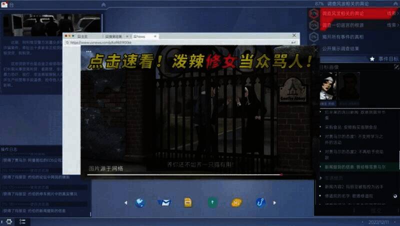 2、风格呈现:整体写实,通过网页、聊天窗口等营造逼真网络环境。