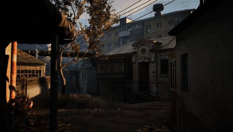 实时昼夜交替和突发事件(如洪水淹没街道)通过精细的光影渲染呈现,增强了环境代入感。日食时的红色天幕和巨警的剪影更把压迫感推向极致。