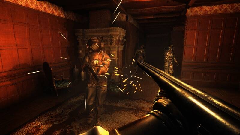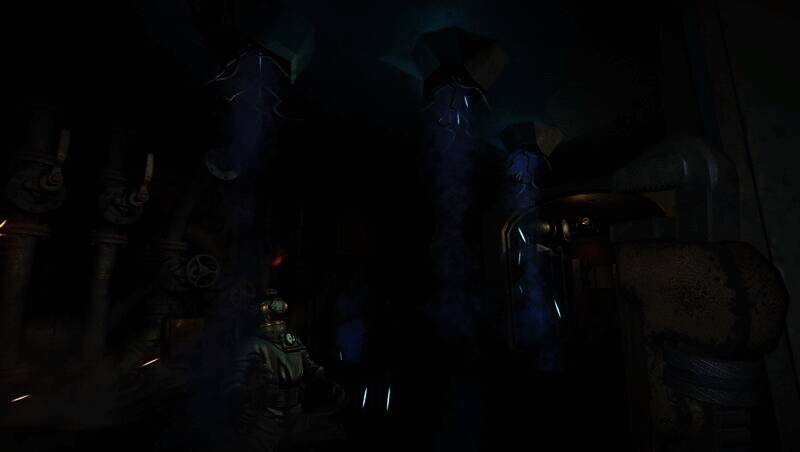 探照灯穿透幽暗水体形成丁达尔效应,怪物触须蠕动投射出扭曲阴影,鱼雷爆炸瞬间的冲击波会短暂照亮整个海底战场。