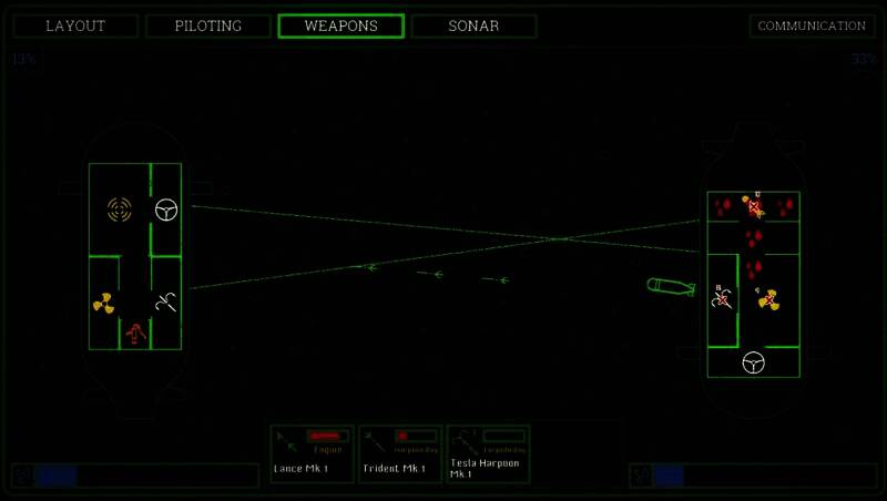 武器库有近战大锤、霰弹枪、电磁鱼雷等装备,玩家可结合声呐干扰、黑客入侵等策略削弱敌人,还能利用潜艇的“人鱼雷舱”发起自杀式突袭。