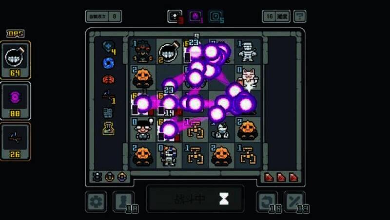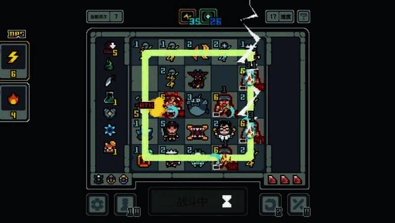 战斗在5×5的格子棋盘上激烈展开。冒险者自身没有攻击能力,但具备一定的血量和回合数,当回合数归零,他们就会掠夺钻石。而随从拥有攻击能力,却没有血条。电脑会随机摆放双方的战斗位置,玩家需要精心搭配近战和远程随从,以实现输出的最大化。