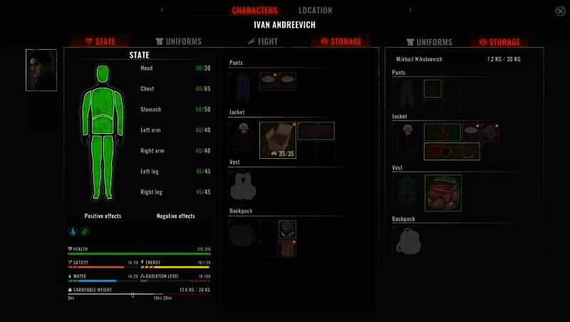 要时刻关注自身身体状态,如饥饿程度、口渴程度。而且,辐射和减益效果会降低生存几率,需要使用药物治疗来恢复健康。