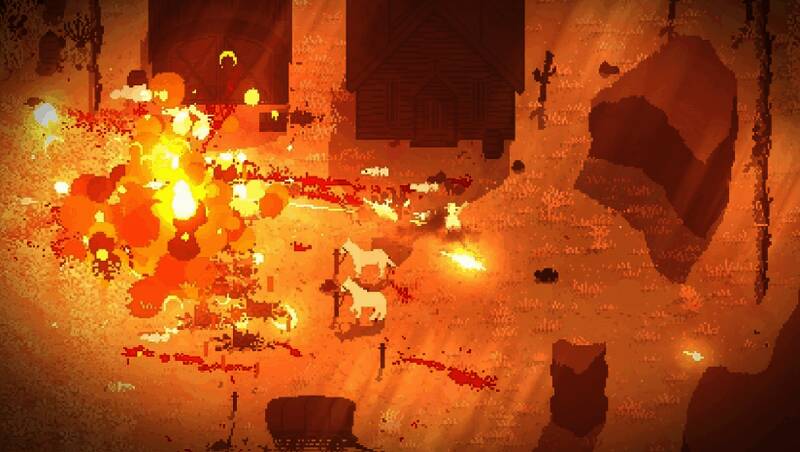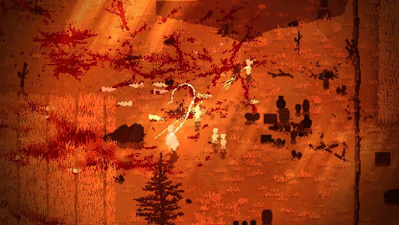 采用极简像素风格,贴图设计多样,干草堆、枯树、岩石、栅栏等元素让场景立体生动,还能挡子弹。粒子特效精致,枪口烟火、爆炸火花、喷血等细节使战斗更真实。配乐契合西方风格,战斗时节奏加快,探索时悠扬舒缓,沉浸感强。