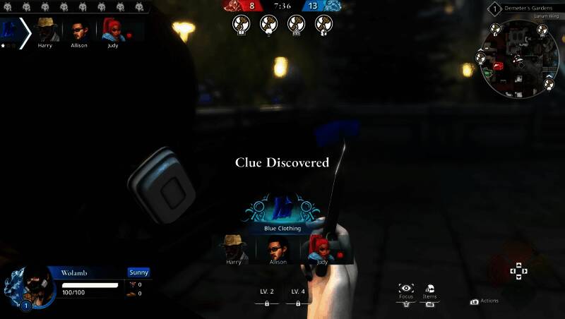 羊阵营作为多数派,要通过仔细探索城堡来收集线索。他们可以利用“聚焦模式”(Focus Mode)侦查脚印、弹壳等痕迹,甚至还能隔墙监听动静。当锁定狼的身份后,羊需要和狼直接战斗并将其消灭,但如果误杀了队友,自己也会死亡。