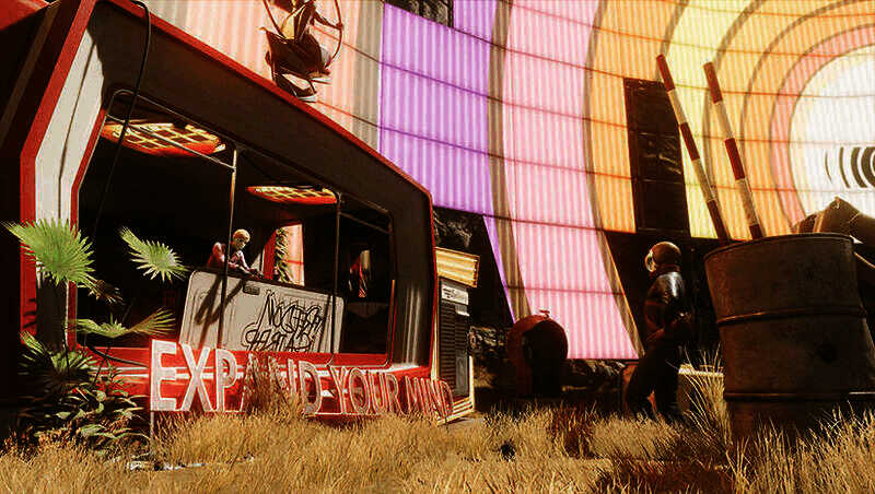 游戏采用复古未来风格的美术设计,将上世纪60年代的元素与未来科技巧妙融合,营造出独特的视觉效果。黑礁岛上的建筑、武器、角色服装等都呈现出复古与未来的碰撞,从老旧的建筑外观到充满科技感的武器装备,都令人眼前一亮。