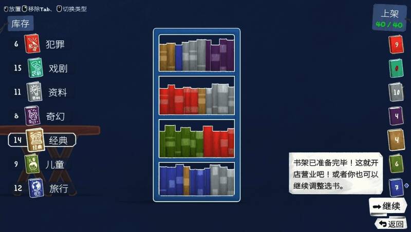 玩家需收集二手书籍与装饰物品,根据顾客偏好调整书籍库存(如奇幻、科幻等类型),并合理陈列以提升销量。