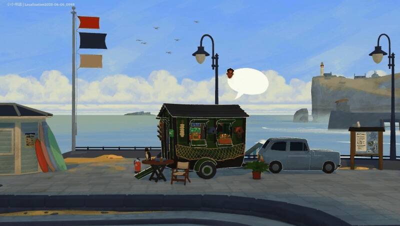 采用2D手绘风格,画面简洁明亮,以暖色调呈现海滨小镇的悠闲氛围。场景设计注重细节:海浪、绿植、书架摆设等元素营造出宁静治愈的视觉体验。UI界面简洁直观,书籍封面与装饰物品的绘制兼具复古感与辨识度,符合“二手书店”的怀旧主题。整体艺术风格贴近绘本,强化叙事温情。