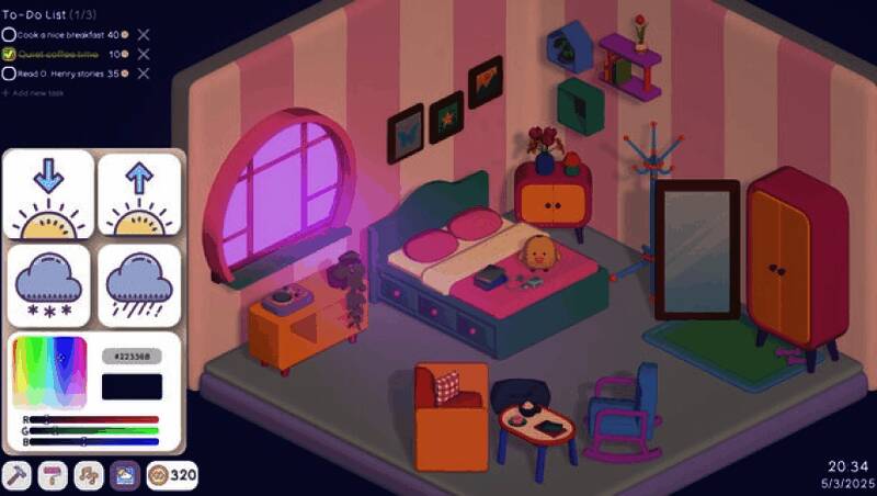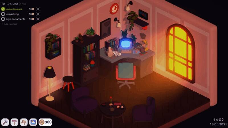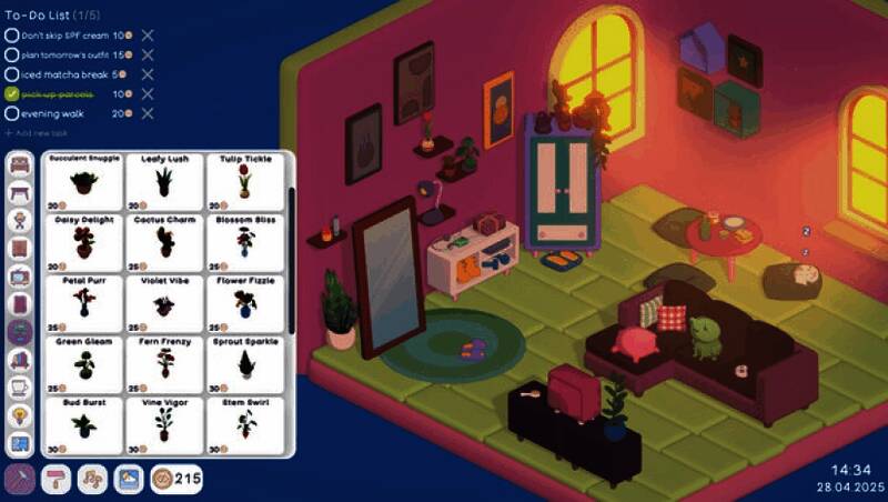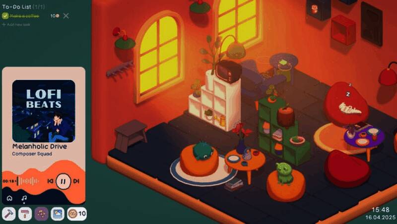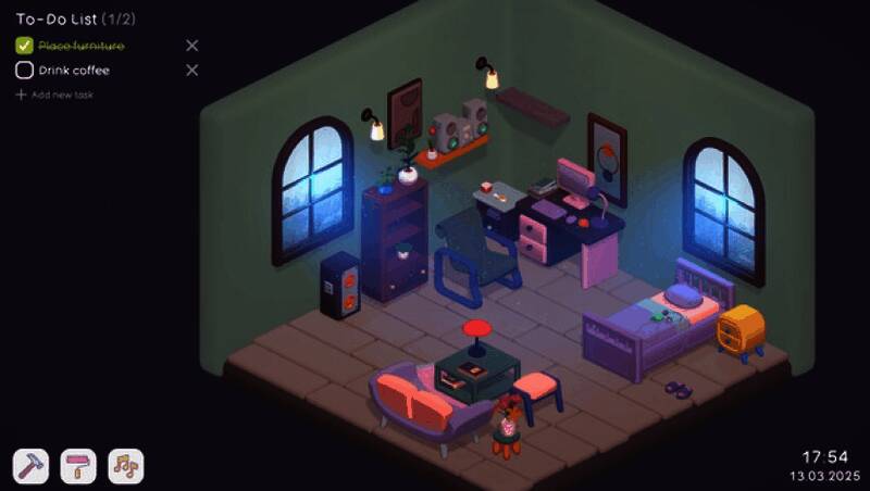 在《Your Personal Chill Apartment》中,你不再是被动完成任务的玩家,而是主动经营生活的主人。通过设定并完成现实中的小目标——比如早起、喝水、读书或运动,就能获得游戏内金币奖励。这些金币可用于解锁新家具、更换墙面颜色、添置绿植或宠物,逐步将初始小屋打造成你理想中的私人避风港。