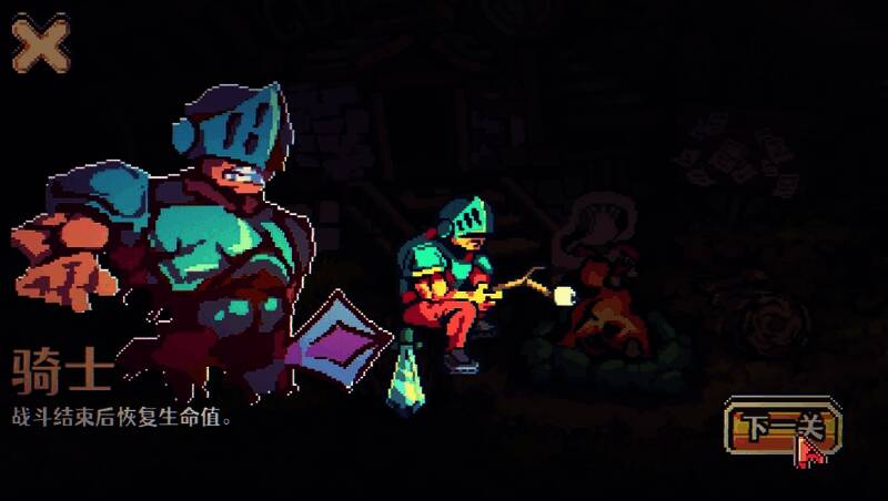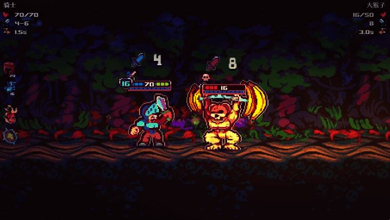 游戏采用卡通像素画风,角色动作简洁流畅,敌人设计充满夸张与幽默感。技能释放时的色彩碰撞、屏幕震动与粒子特效极大增强了打击感,尤其在百张卡牌连发时视觉冲击力拉满。地下城场景融合奇幻与恶搞元素,如蠢萌怪物与名为“肉洞”的诡异最终关卡,进一步强化了游戏的独特气质。