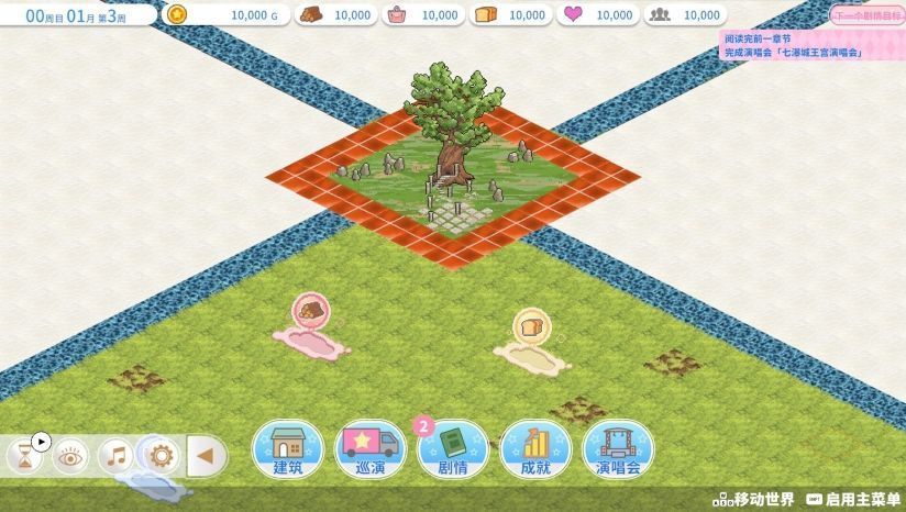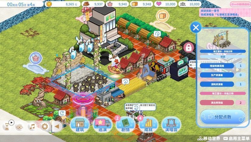游戏巧妙融合了城镇建设与偶像成长双线系统。玩家需从零开始规划道路网络,建造练习室、粉丝广场、应援商店等核心设施,通过积累人气值与资金推动圣地扩张。设施等级与布局直接影响粉丝数量增长与资源产出效率,构建出完整的经济生态链。
