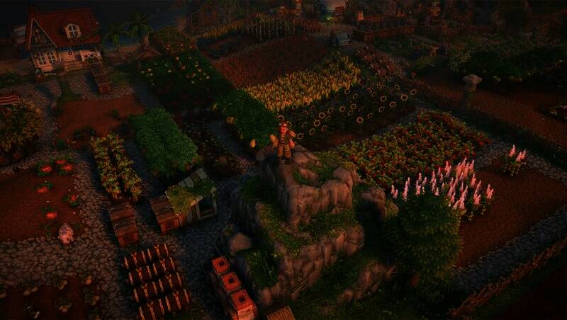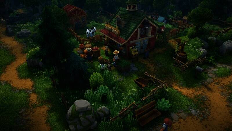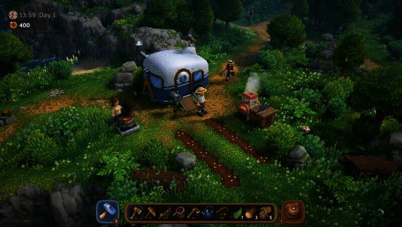玩家可独自或最多四人联机在岛上探索森林、山脉和遗迹等区域,收集木材、石头等资源用于建筑和制作工具,同时合理规划农场和牧场布局。