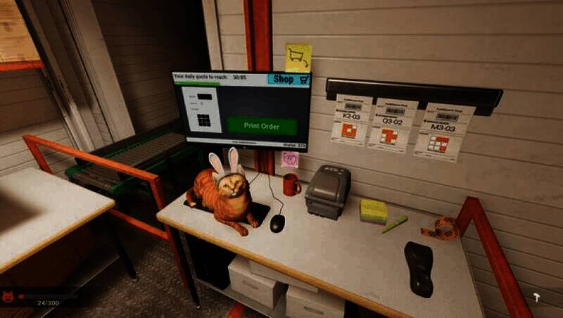 《猫好货坏》是由曾打造《人类的崛起》《无时速上限赛车》等游戏的开发商Cybernetic Walrus精心制作的一款恐怖游戏。在游戏里,玩家化身为仓库工人,日常工作是在狭小办公室借助电脑接收货物订单,之后前往昏暗且空间复杂的仓库找寻货物,最后返回办公室打包出货,以达成当天的出货目标。