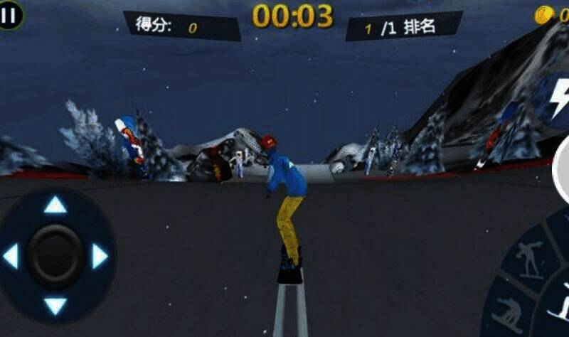 1、借助屏幕虚拟操纵杆或触摸操作控制滑雪者方向和速度。