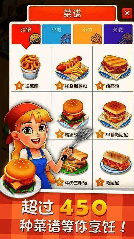 这款游戏采用卡通画面,玩家能解锁不同餐厅、扩大经营业务,完成考验与挑战,收获轻松有趣的经营成就,自由体验精彩经营内容。