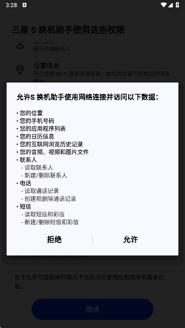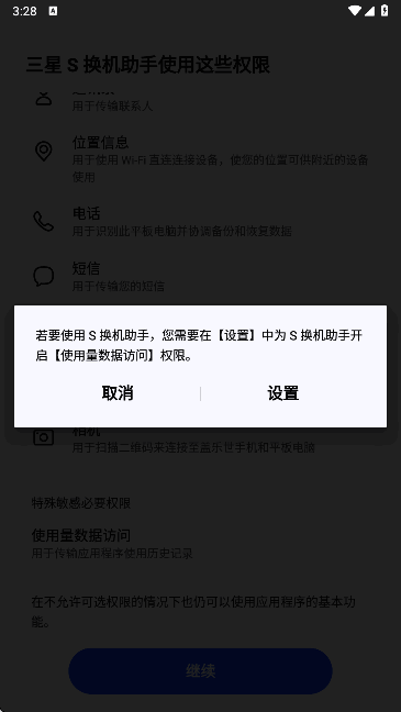 3. 传输:开启传输,让app自动完成,新的Samsung Galaxy设备很快就能使用。