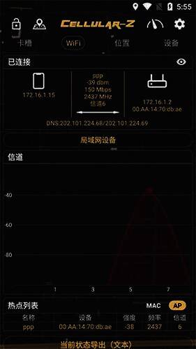 Cellular - z中文版主要用于实时监控信号质量和WIFI网络信息,尤其擅长测试LTE相关信号。用户可随时查看所在地区网络情况、特定地点信号强度、查询基站,还支持多卡槽查询,能查看当前位置WIFI信息、双卡手机网络信息和电信蜂窝信道。