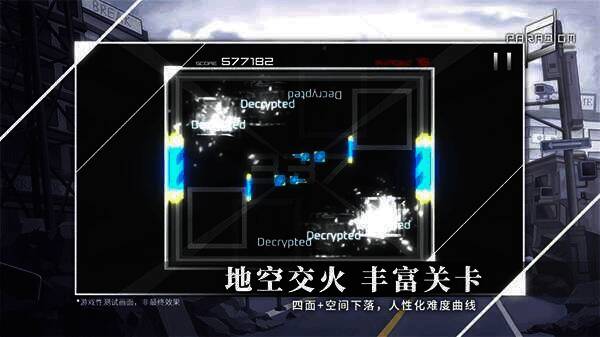 3、采用四面+空间下落式节奏玩法,玩家需点击下落音块;