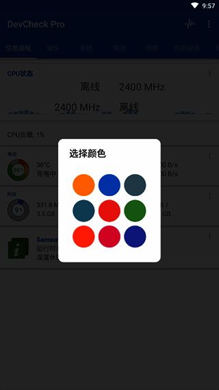 2. 信息面板具备显示CPU状态、CPU负载、电池状态、网络状态等实用便捷功能。