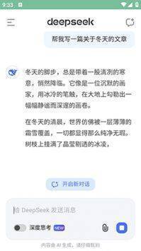 DeepSeek移动端官网版APP可直接下载安装,免费使用。借助这款官方免费的人工智能助手,用户能进行搜索、写作、阅读、解题、翻译等操作,软件功能丰富,能带来优质使用体验。