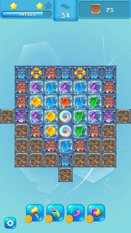 随着关卡深入,会加入冰块、锁链等障碍物或特殊宝石,玩家要运用策略消除。