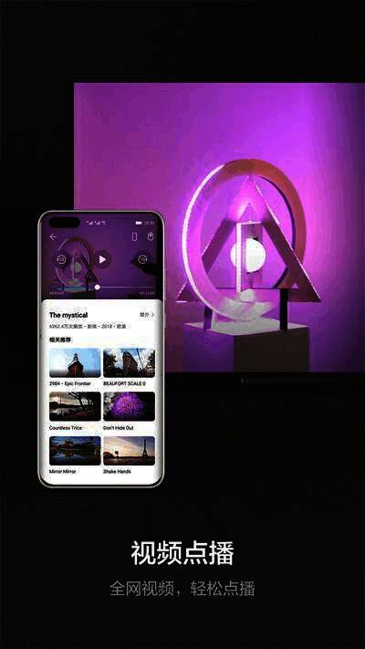2、内容投影:支持将手机里的视频、图片、音乐等内容一键投影到大屏幕上,畅享大屏幕观赏的乐趣。