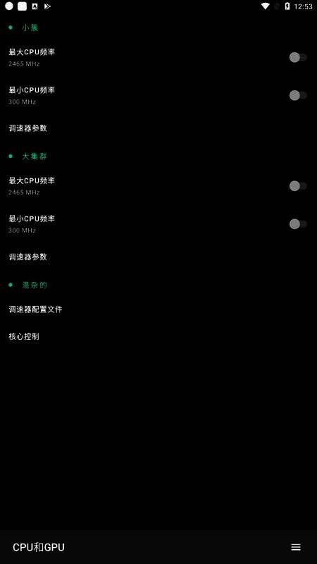 6、在app的CPU管理器中,允许用户自定义设置CPU频率的大小限制。