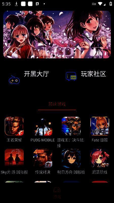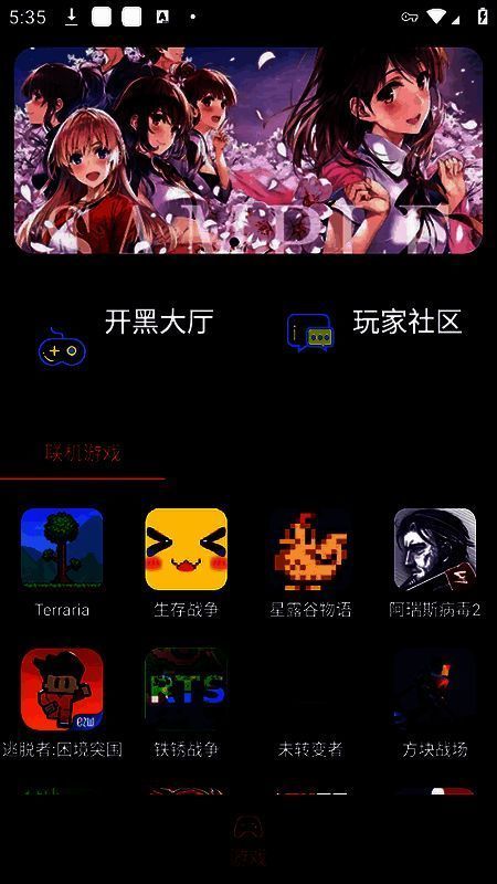 1、首先进入像素联机软件,在首页能看到大量联机游戏、加速游戏、其他游戏等,接着进入玩家社区;
