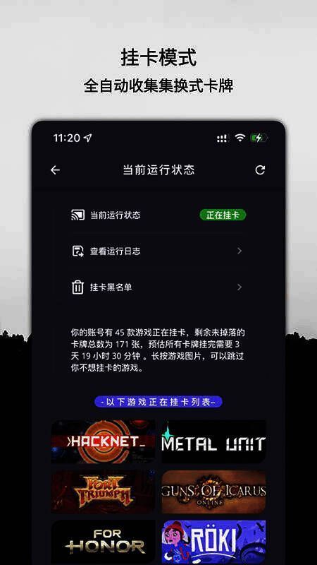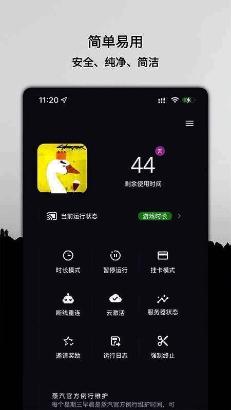 云挂卡通过特殊方式延长游戏时间,类似云手机,专为 Steam 玩家打造,可在手机上 24 小时挂机,还能随时查看运行状态。