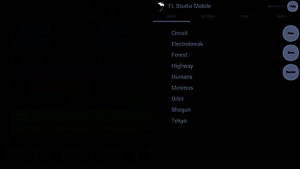 在左上方有个FL logo的按钮,点击后会出现两个选项,new、save(手机版本有三个:new 、save、 quit)