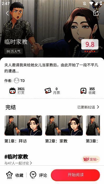 与主要漫画出版商同步更新,保证用户第一时间阅读最新章节。