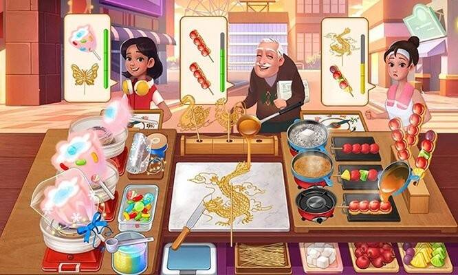 游戏含多个城市地区,各地有独特饮食文化和顾客喜好,可定制菜单。完成任务挑战获金币食材,用于扩店或升级设施。能雇佣厨师、调酒师和服务员并培训,提升团队实力和经营效率。天气、节假日等因素影响客流,要合理制定策略。