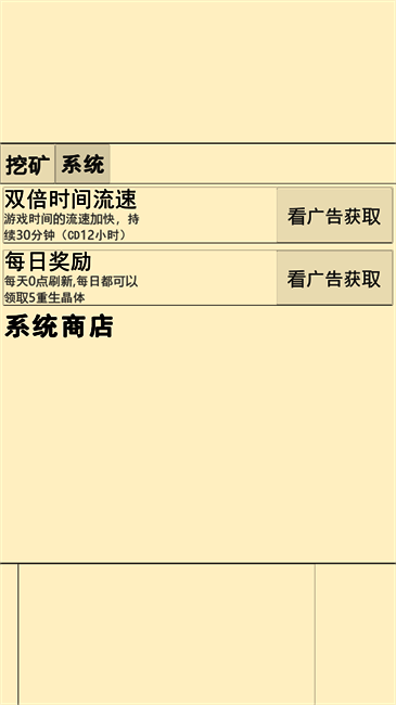 重生挖矿游戏是一款玩法丰富且趣味十足的挖矿小游戏。它以简单画风呈现,基于文本展开核心玩法。玩家只需点击屏幕就能开采矿产资源,不断收集材料。每一次点击都是收获宝贵矿产的机会,这些资源是游戏中发展和成长的基石。收集到矿物后,可沉浸于技术研究,解锁强大技术,从基础工具逐步升级到复杂的自动化技术,为冒险助力。
