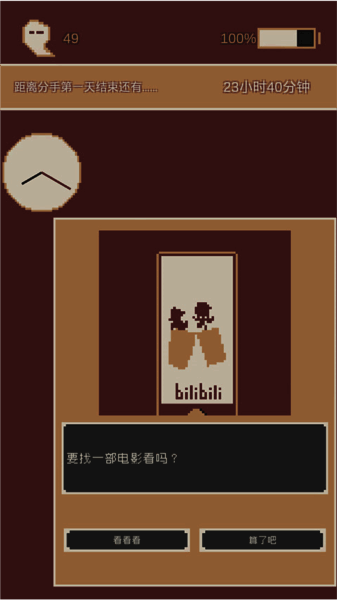 看电影耗电10%,电量不足会影响后续游戏,且有几率触发回忆杀,强制减费。
