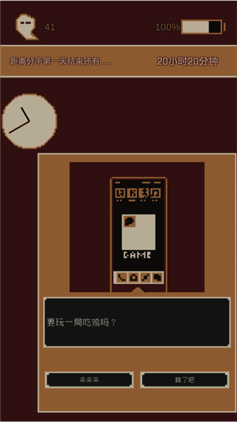 8小时时会有强制回忆杀,选项为“形容 - 有钱 - 圆形”,最低扣5丧值,必扣6丧值。值得注意的是,电量全用于吃鸡基本够用,打完后大概还剩20多丧值。