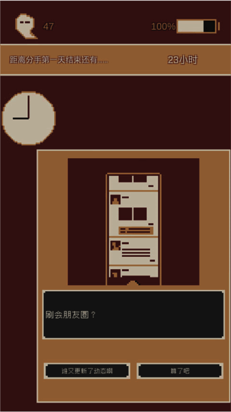 5、关于【刷朋友圈】:每次刷朋友圈消耗5%电量,刷朋友圈丧值不变,不刷则减丧值。