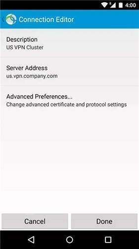 - 为移动用户提供持续的企业访问,从任何Android系统提供可靠且易于部署的加密网络连接。