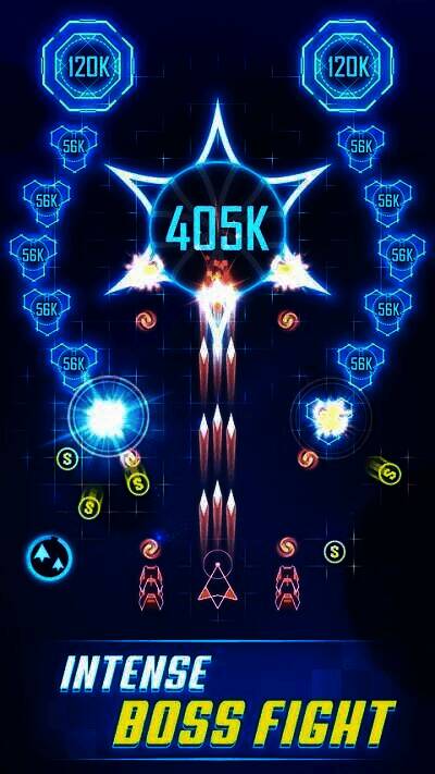 玩家操控战机在空中飞行,既要躲避敌人的弹幕攻击,又要使用各种武器击毁敌机,保护自身安全。游戏中有丰富的战机和武器可供选择,玩家可根据任务需求和敌人强度搭配合适的装备。每个关卡都有强大的 boss,玩家需根据其攻击模式制定不同策略应对。游戏采用经典竖版射击方式,操作简便,玩家只需控制战机移动和射击,就能享受快节奏战斗。
