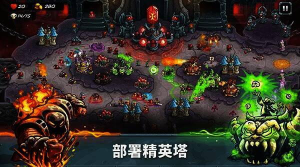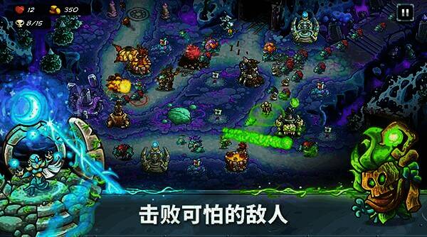 3、有八种全新专业防御塔升级!玩家可用弩兵堡垒、强大的圣殿骑士、亡灵甚至地震机切开、烤焦和践踏敌人。