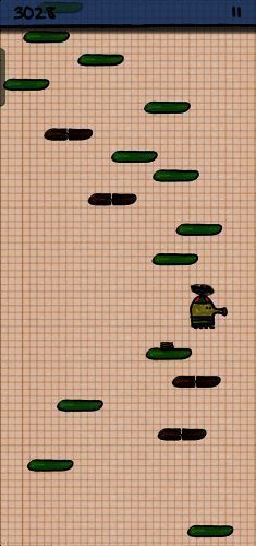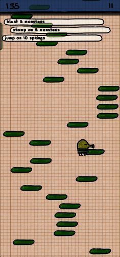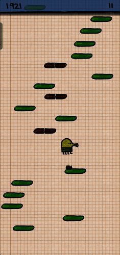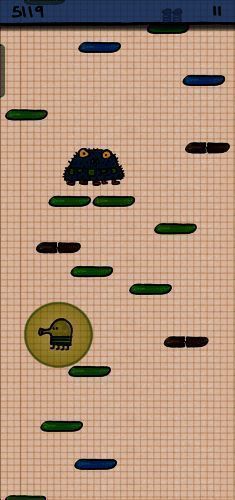 1. 游戏中有多种颜色平台。普通版本里,绿色平台固定,褐色踩后断裂,蓝色左右移动,白色踩一下消失,黄色有时间限制会逐渐消失。还有灰色上下移动、暗黄色跳上左右移动一次、闪烁白色跳上消失并在上方出现的平台。绿色或蓝色平台上有弹簧等助跳道具,但借用后速度变快,难以及时应对突发状况。