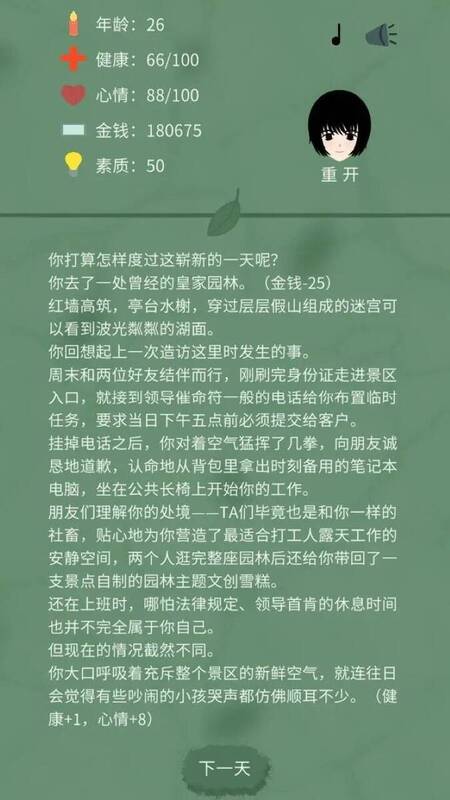 2、模拟角色心理状态,玩家需管理角色的压力、情绪和健康,维持良好心理状态。