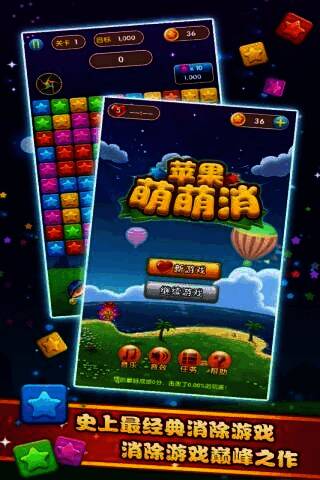 1、经典三消模式:玩家通过交换相邻苹果,将相同颜色苹果排成一列进行消除,达成目标便可通关。