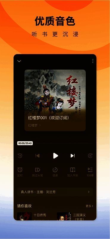 7、还能进行免费听书,有智能朗读和真人讲书两种模式,多种音色供您挑选。