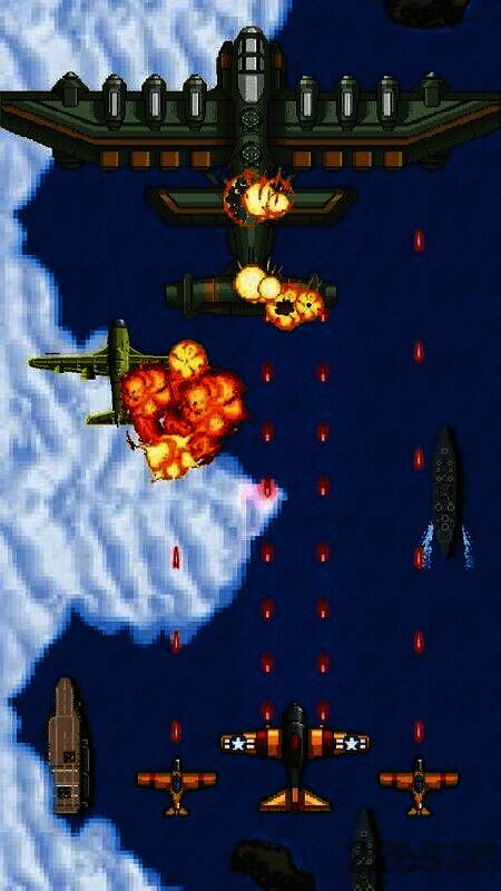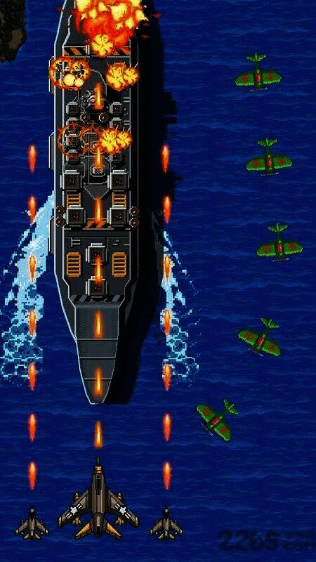 - 游戏内有多种武器和道具,击败敌机、收集道具可提升火力与防御。