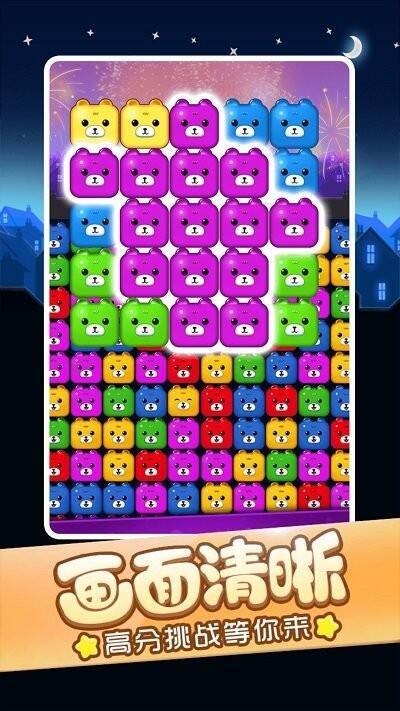 这是一款休闲消除类游戏,玩家与萌熊一同,通过连接相同颜色的熊熊来迎接挑战。